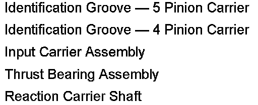 This change contains a new, thicker thrust bearing with increased capacity and angled lip added for assembly error proofing. The reaction carrier shaft bearing pocket and the input carrier bearing surface have been modified to accommodate the new bearing. Each part has specific features to allow identification from the prior design.