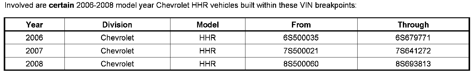 Dealers are to confirm vehicle eligibility prior to beginning repairs by using the GM Vehicle Inquiry System (GMVIS). Not all vehicles within the above breakpoints may be involved.
