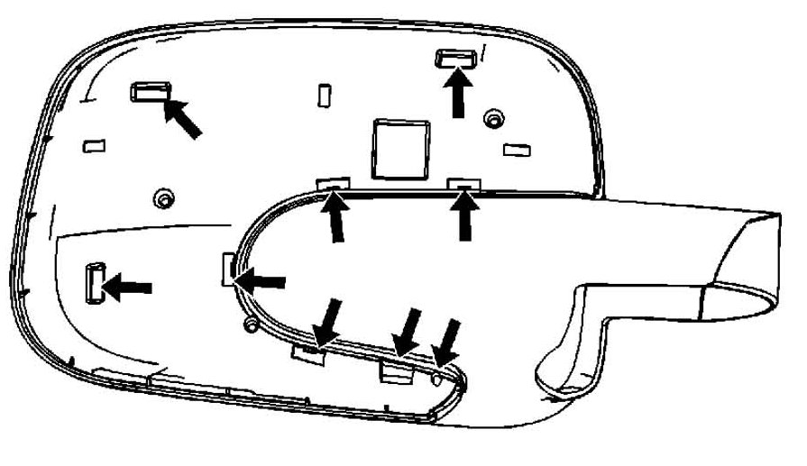 4. Carefully position the outside rearview mirror cover to the mirror housing and push to engage the retaining tabs. Ensure all the retainers are fully seated.