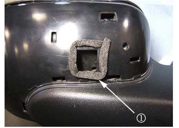 3. Install 1/2 width pieces of Kent Automotive(TM) 30 mm wide BRS Flocking tape, or equivalent, around the perimeter and underside of the mirror housing.