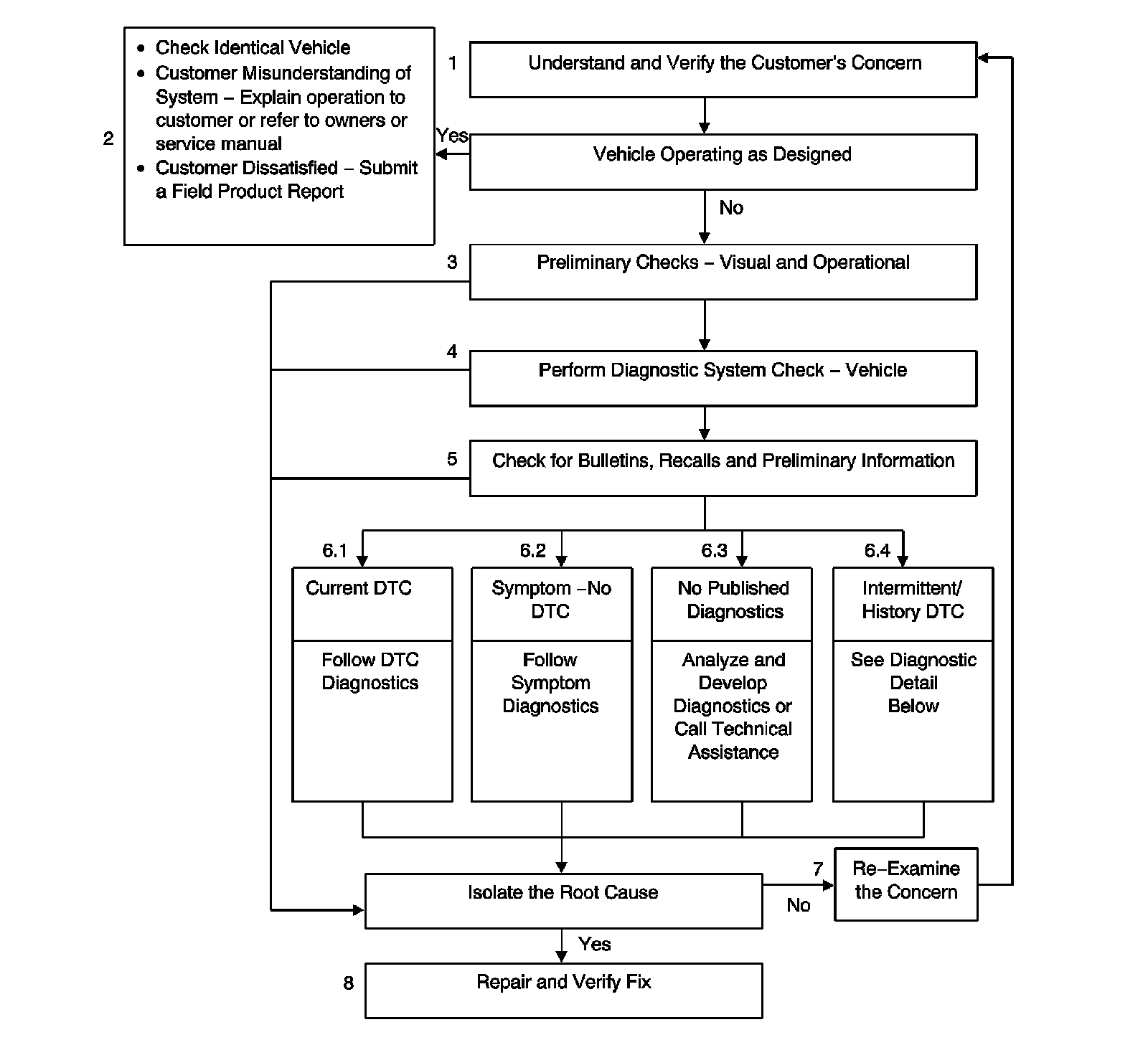 8. Re-examine the Concern: If a technician cannot successfully find or isolate the concern, a re-evaluation is necessary. Re-verify the concern. The concern could be an intermittent or normal condition.