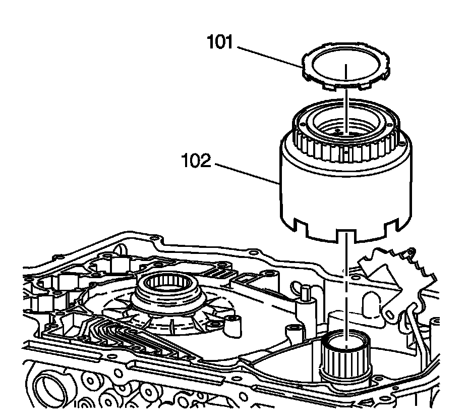 Remove the reverse input clutch housing and the 2nd roller clutch assembly (102).