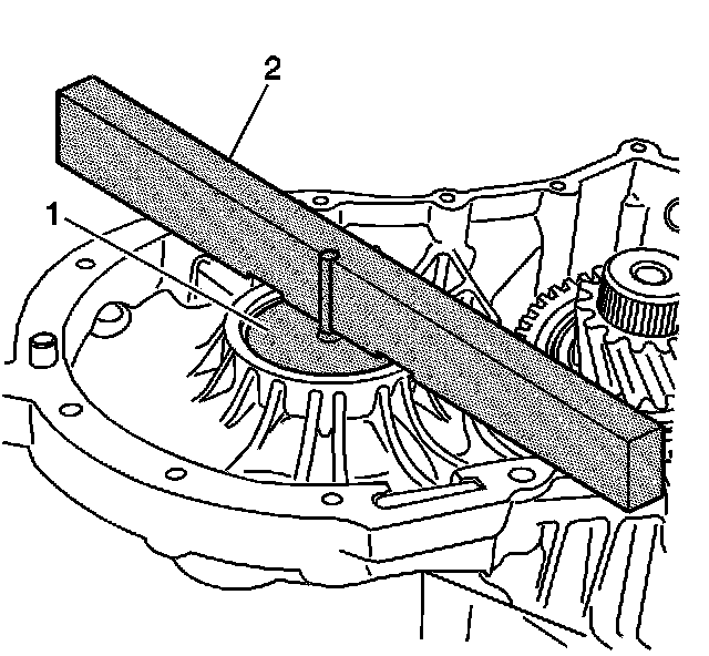 19. Place the J 44388-1 (1) across the face of the ring gear.
