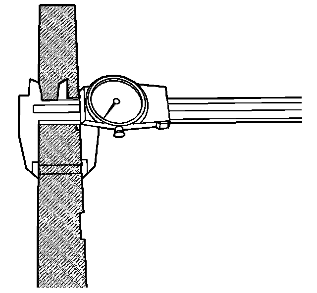 21. With the gage rod of the J 44388-1 (1) fully seated on the shim land for the left differential side bearing shim, tighten the thumbscrew on the J 44388-1 (1).