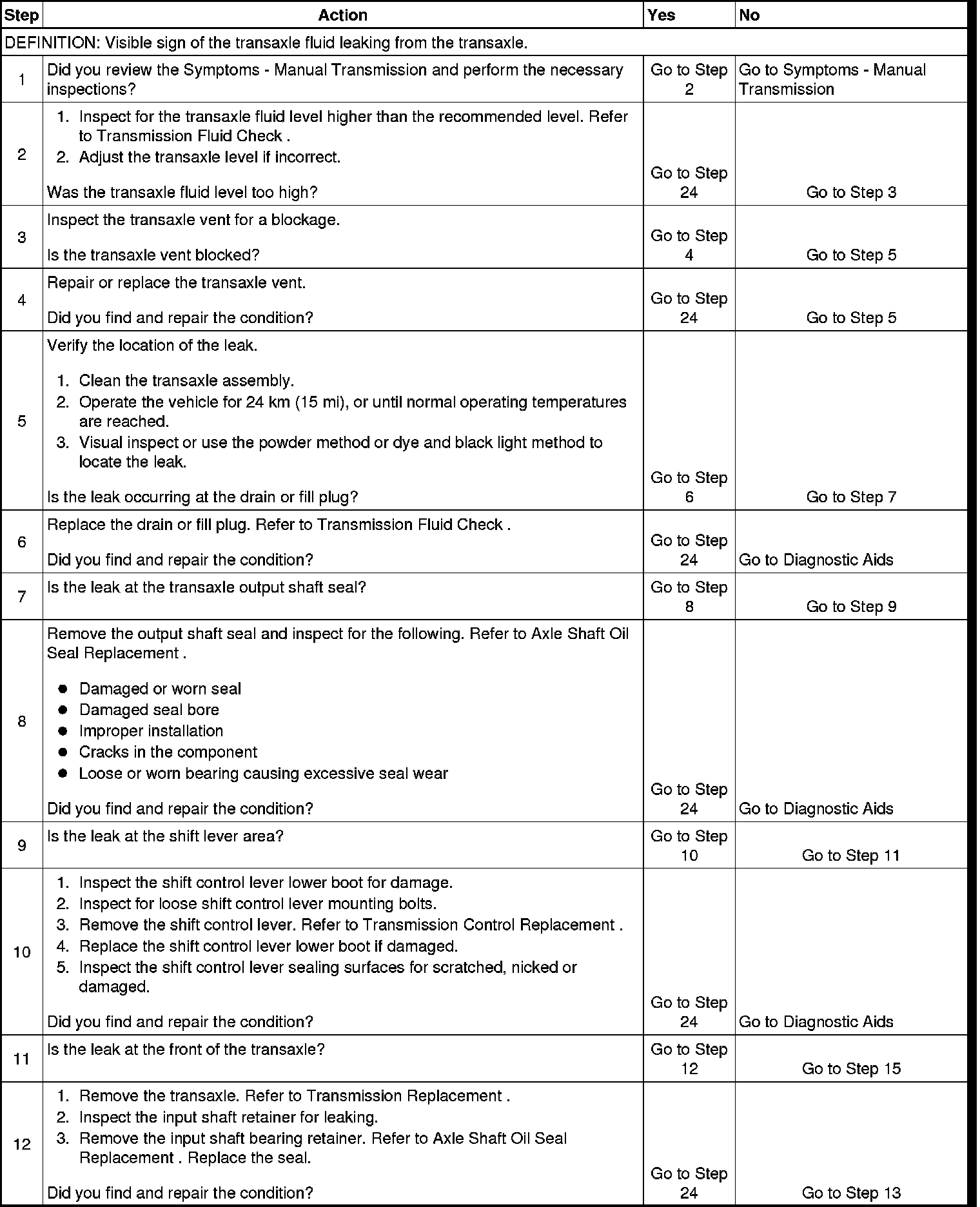 5. Use an approved method to clean the transaxle to ensure the leak location is correctly identified. If using a powder method or dye method, ensure the products are compatible with the transaxle fluid.