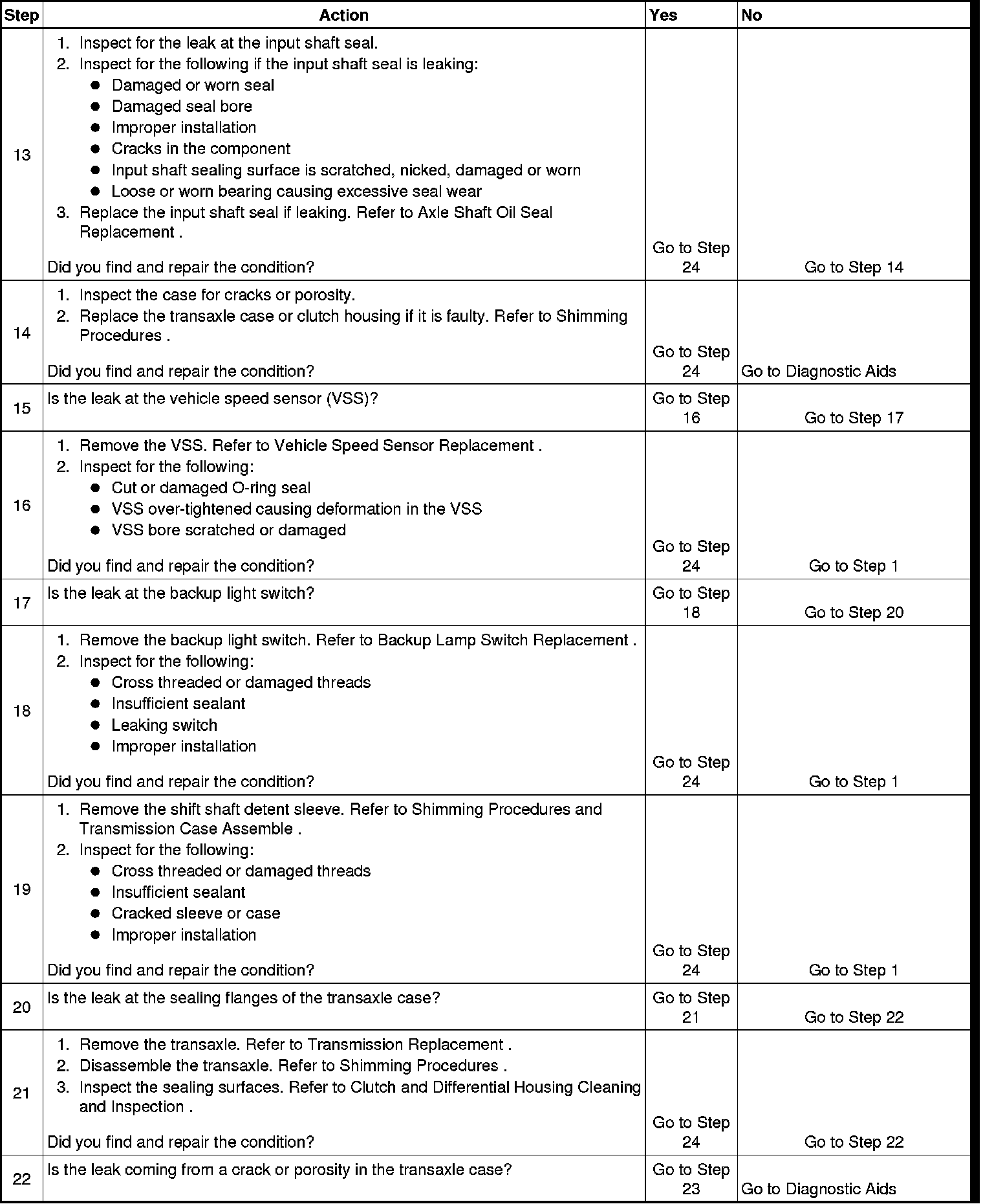 The number below refers to the step number on the diagnostic table.