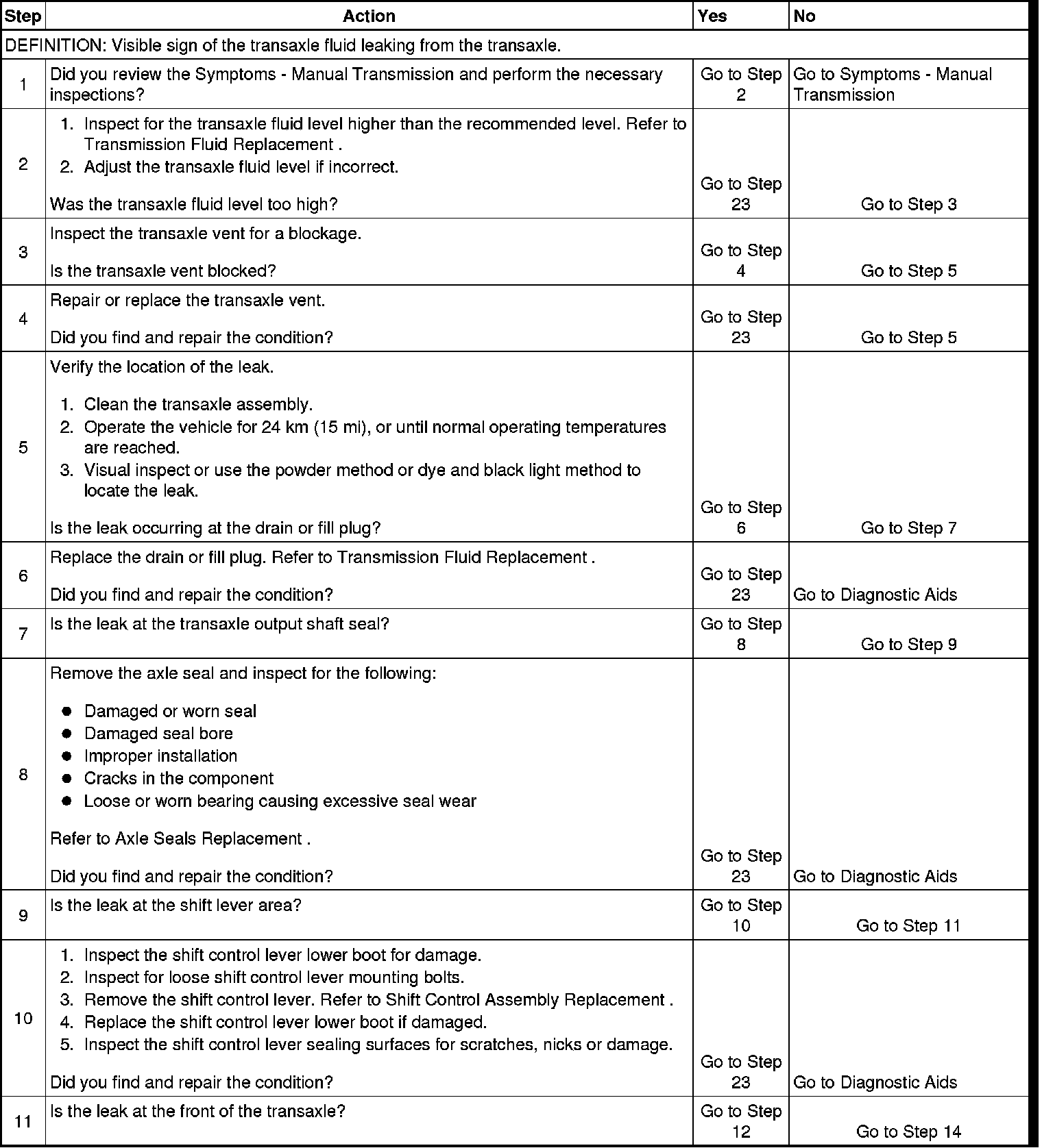 5. Use an approved method to clean the transaxle to ensure the leak location is correctly identified. If using a powder method or dye method, ensure the products are compatible with the transaxle fluid.