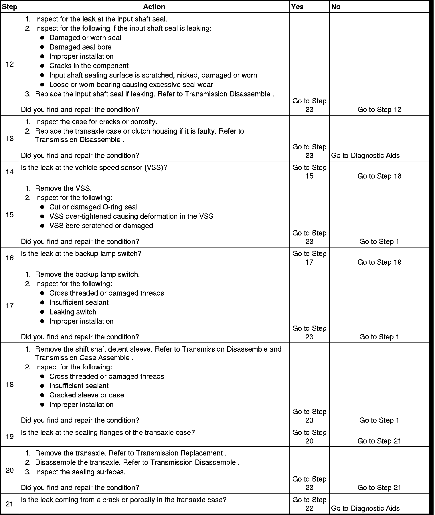 The number below refers to the step number on the diagnostic table.