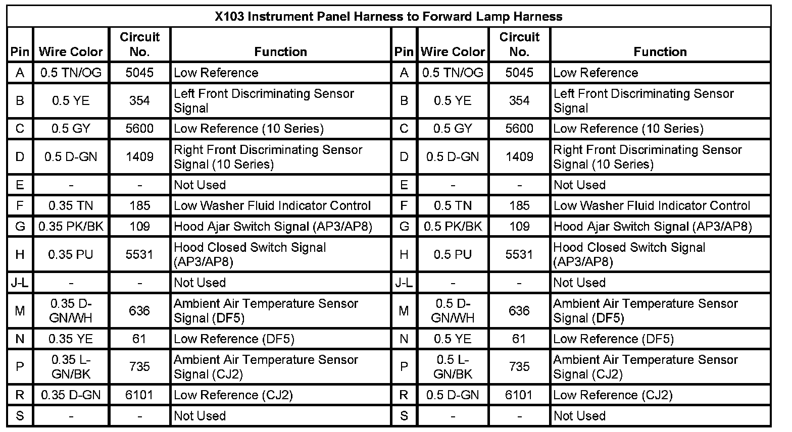 X103 Instrument Panel Harness to Forward Lamp Harness