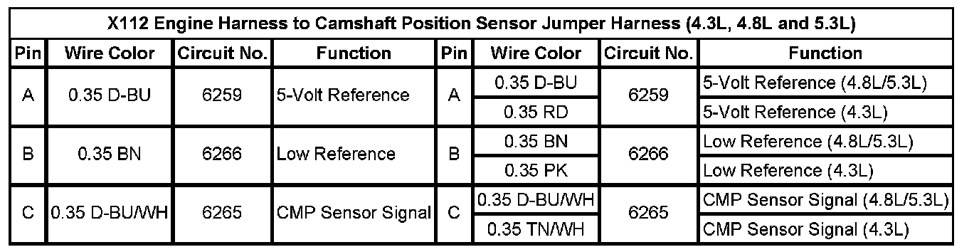X112 Engine Harness to Camshaft Position Sensor Jumper Harness (4.3L, 4.8L and 5.3L)