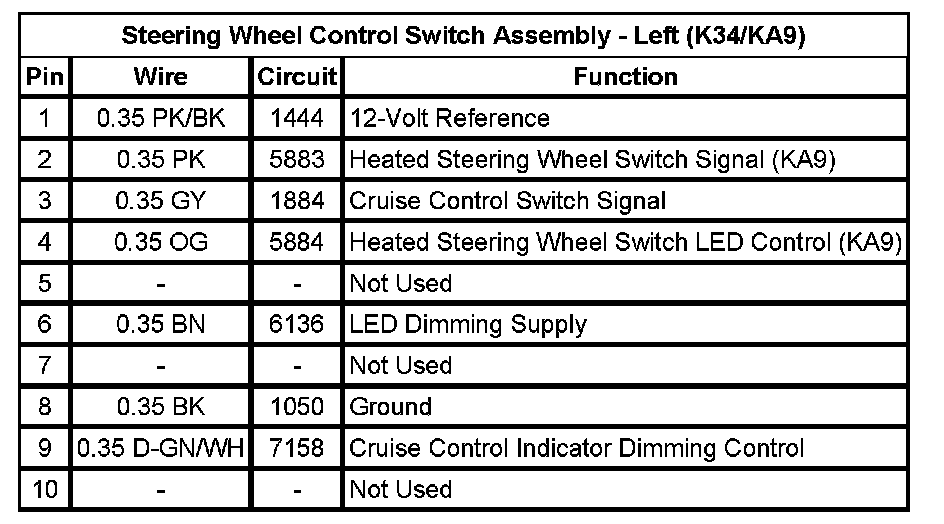 Steering Wheel Control Switch Assembly - Left (K34/KA9)