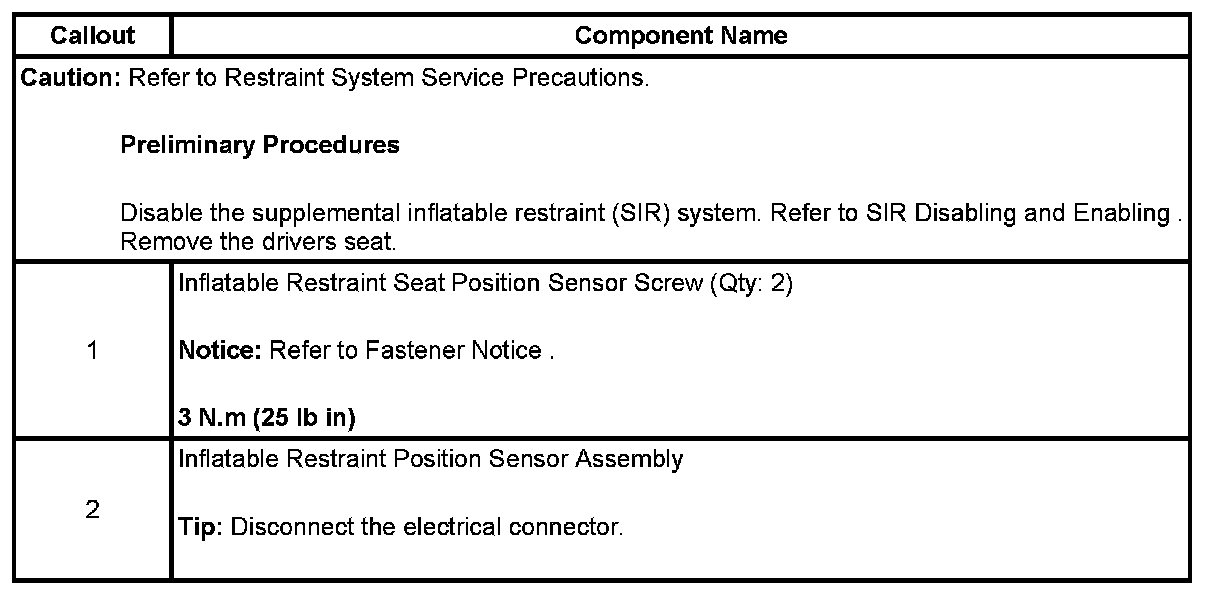 Inflatable Restraint Front Passenger Position Sensor Replacement
