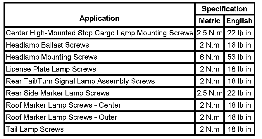 Fastener Tightening Specifications