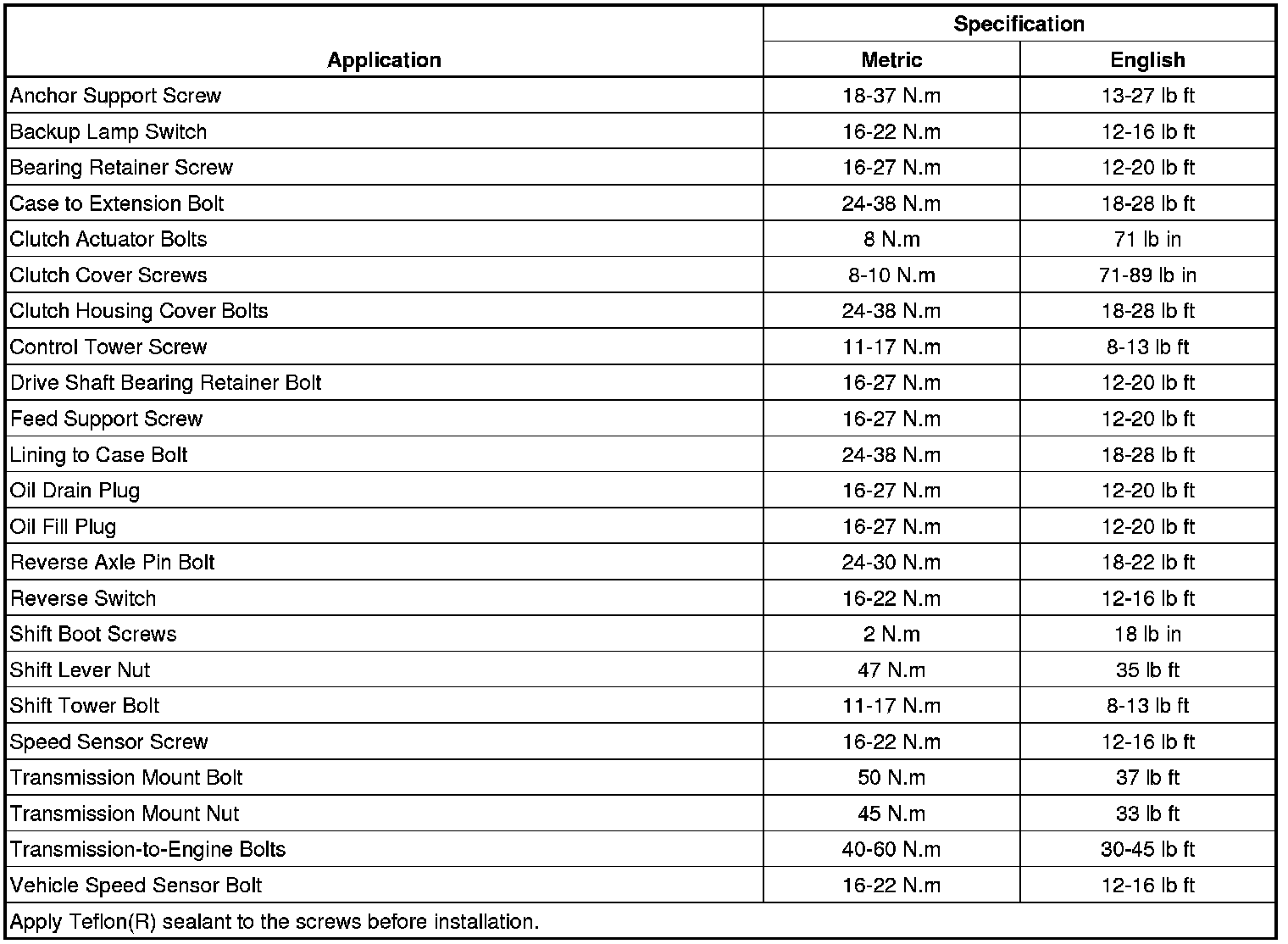 Fastener Tightening Specifications
