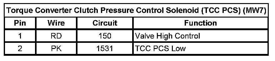 Torque Converter Clutch Pressure Control Solenoid (TCC PCS) (MW7)