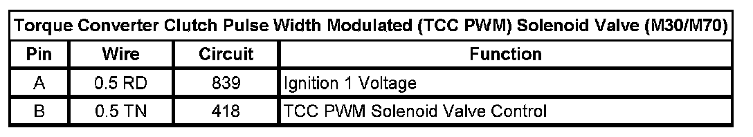 Torque Converter Clutch Pulse Width Modulated (TCC PWM) Solenoid Valve (M30/M70)