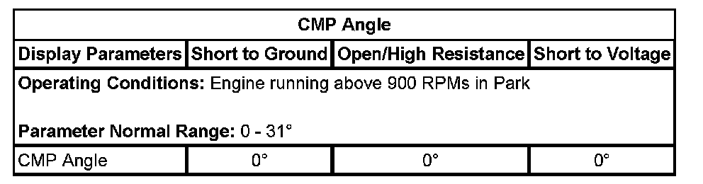 5. Command the CMP actuator from zero to 25 degrees. Verify the scan tool CMP actuator ckt short to volts test status parameter is OK.