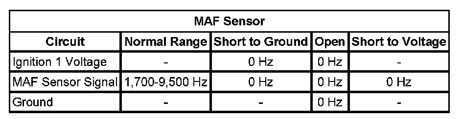 * Depending on the current ambient temperature, and the vehicle operating conditions, a MAF sensor signal circuit that is shorted to the IAT signal circuit will cause the MAF sensor signal to be skewed or erratic. Additionally it may cause a rapid fluctuation in the IAT Sensor parameter.