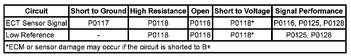 - Engine Coolant Temperature (ECT) Sensor Circuit Low Voltage