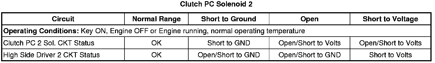 - Clutch Pressure Control (PC) Solenoid 2 Control Circuit Low Voltage