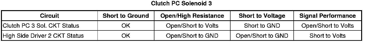 - Clutch Pressure Control (PC) Solenoid 3 Control Circuit Low Voltage