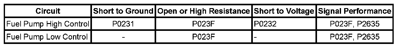 ^ If the DTCs are set, refer to DTC P0192 or P0193 or DTC P0231, P0232, or P023F. P0192 P0231