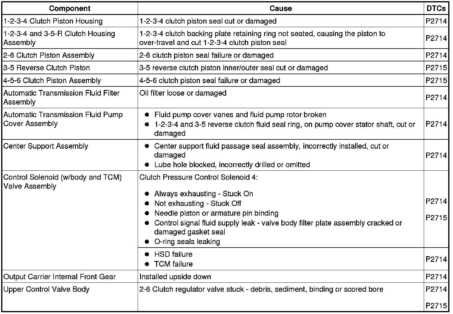 The following fault table will help determine if a hydraulic circuit or an incorrect position of a valve train component affects the transmission operation.