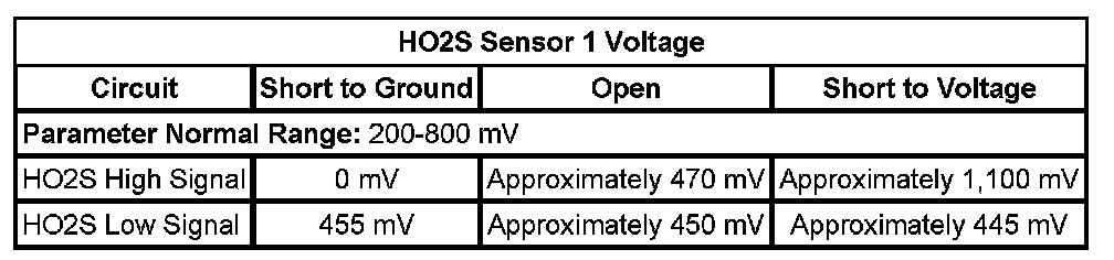 * The ECM detects that the HO2S 1 parameter is between 350-550 mV for 100 seconds.