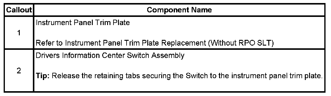 Driver Information Display Switch Replacement (without RPO SLT)