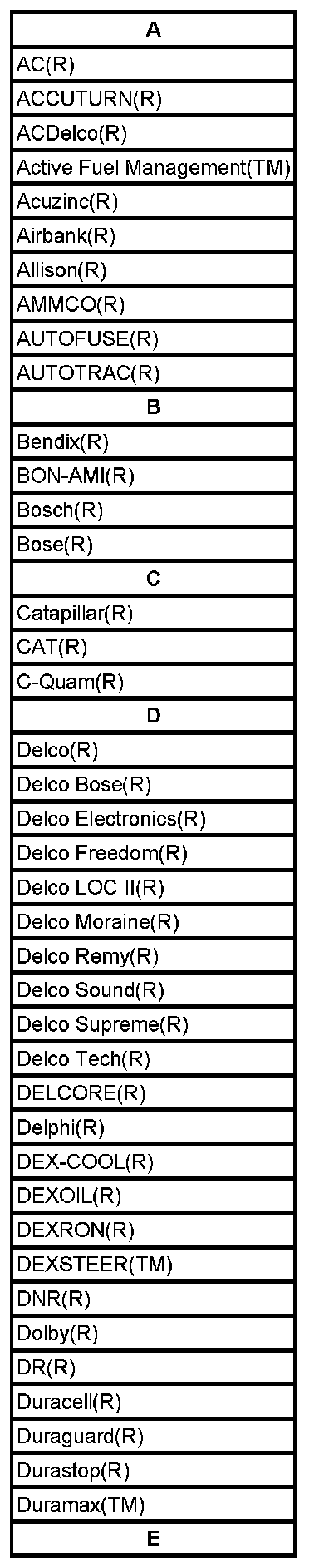 Listed below are Registered Trademarks ((R)) or Non-Registered Trademarks ((TM)) which may appear in this service manual.