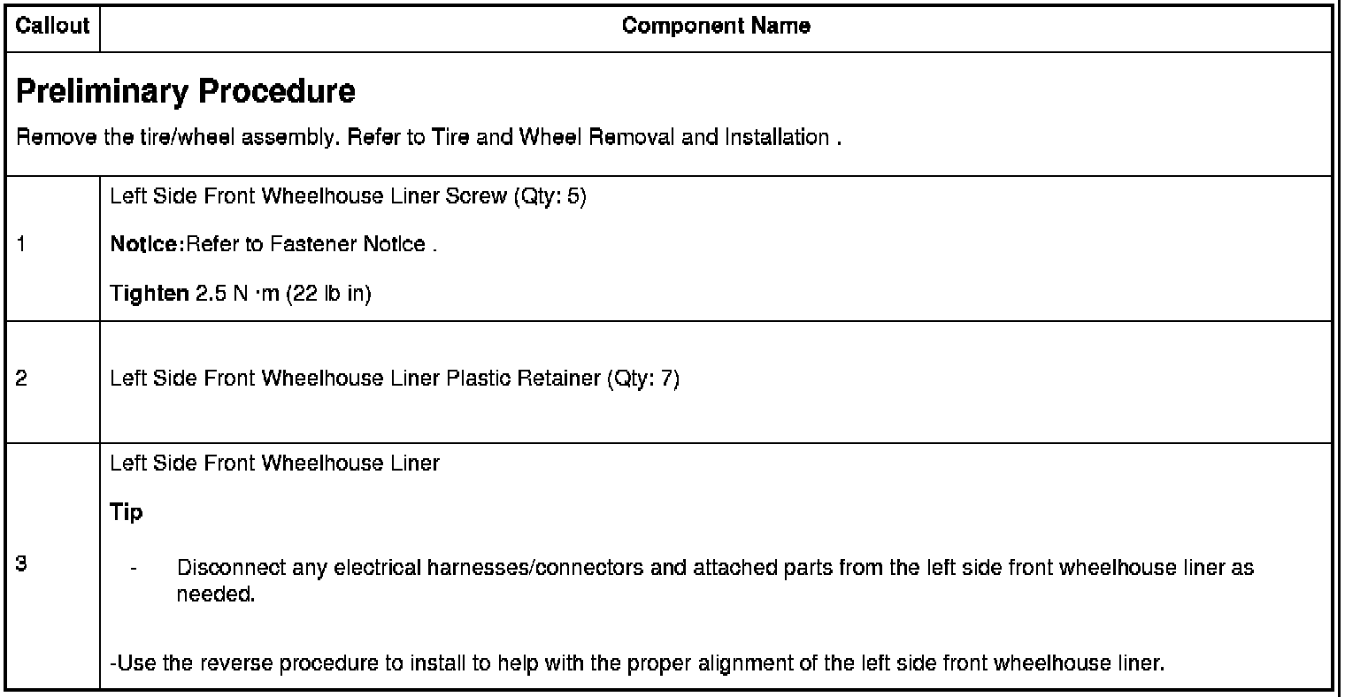 -Use the reverse procedure to install to help with the proper alignment of the left side front wheelhouse liner.