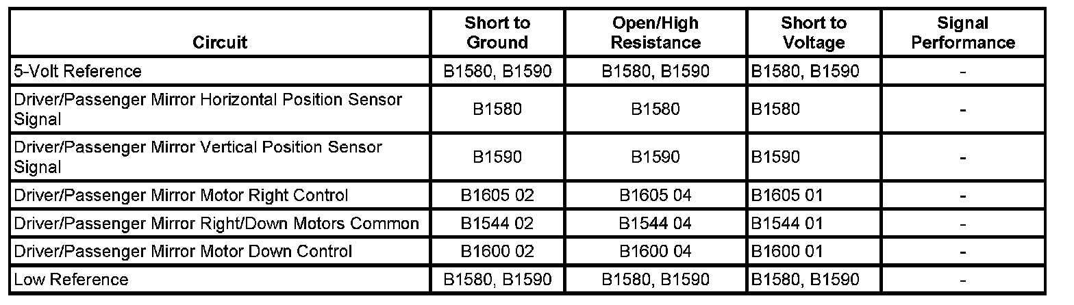 ^ If the vehicle is not equipped with RPO DL3/DR4, refer to Mirror Motor Circuit Malfunction.
