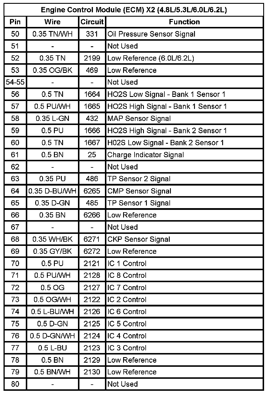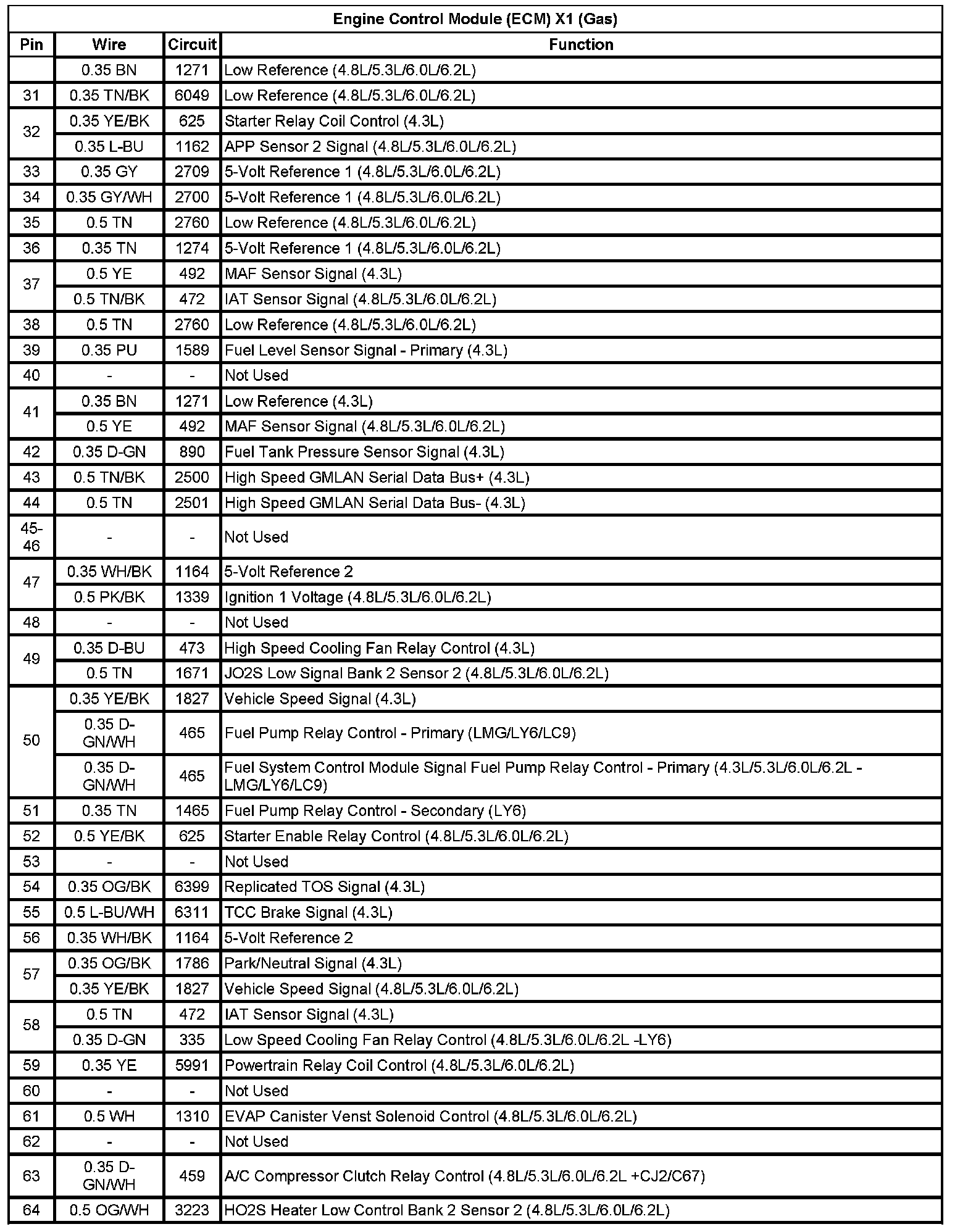 Engine Control Module (ECM) X1 (Gas) (Pin 31 To 64):