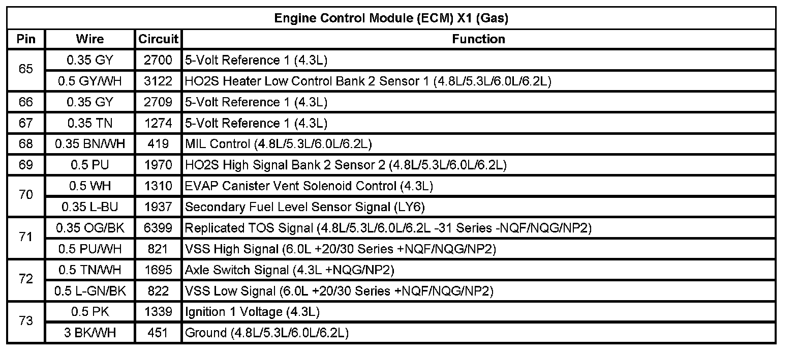 Engine Control Module (ECM) X1 (Gas) (Pin 65 To 73):