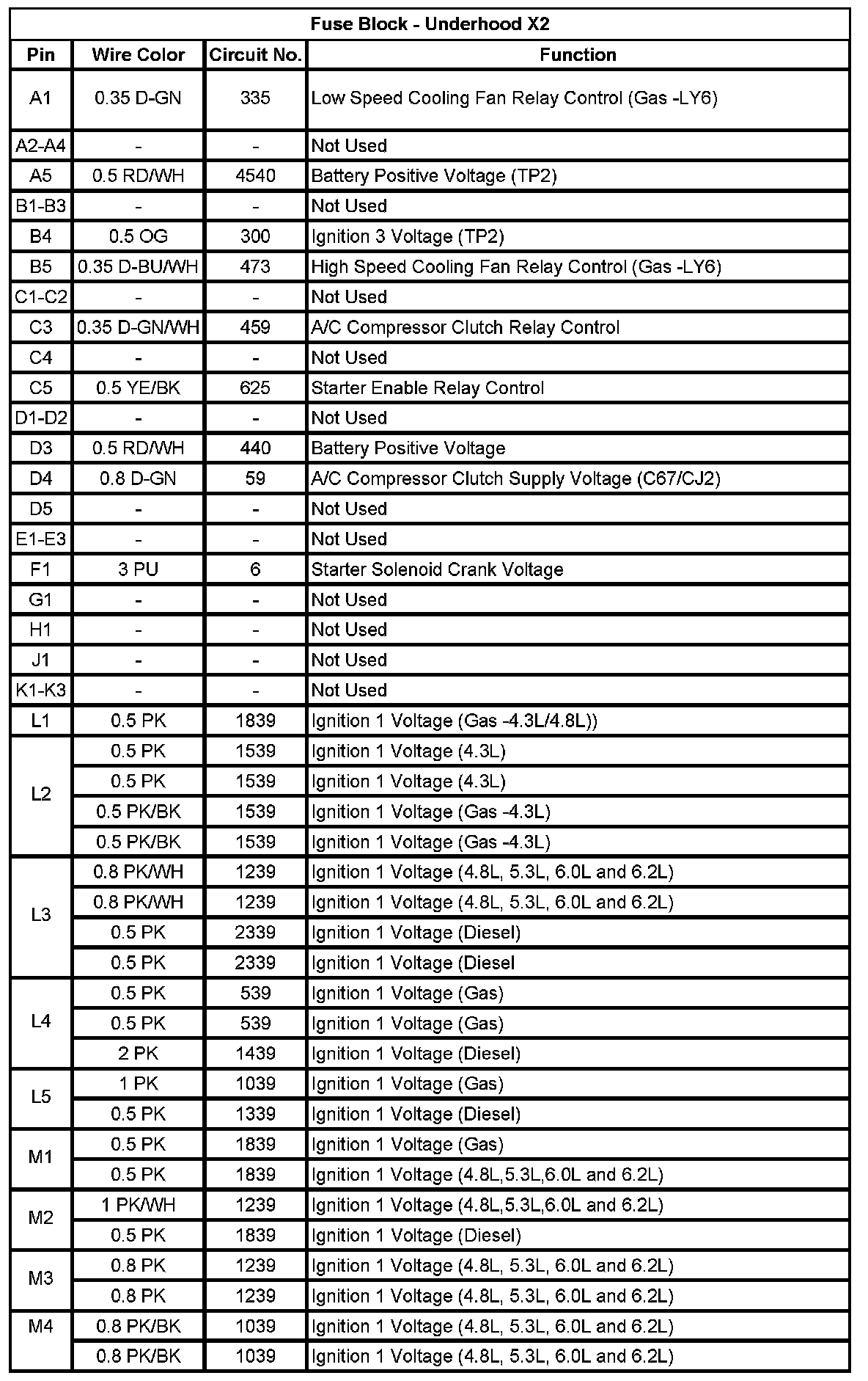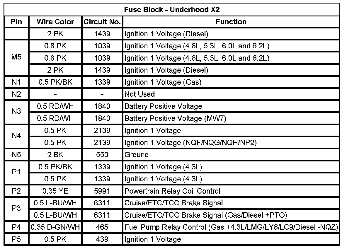 Fuse Block - Underhood X2 (Pin M5 To P5):