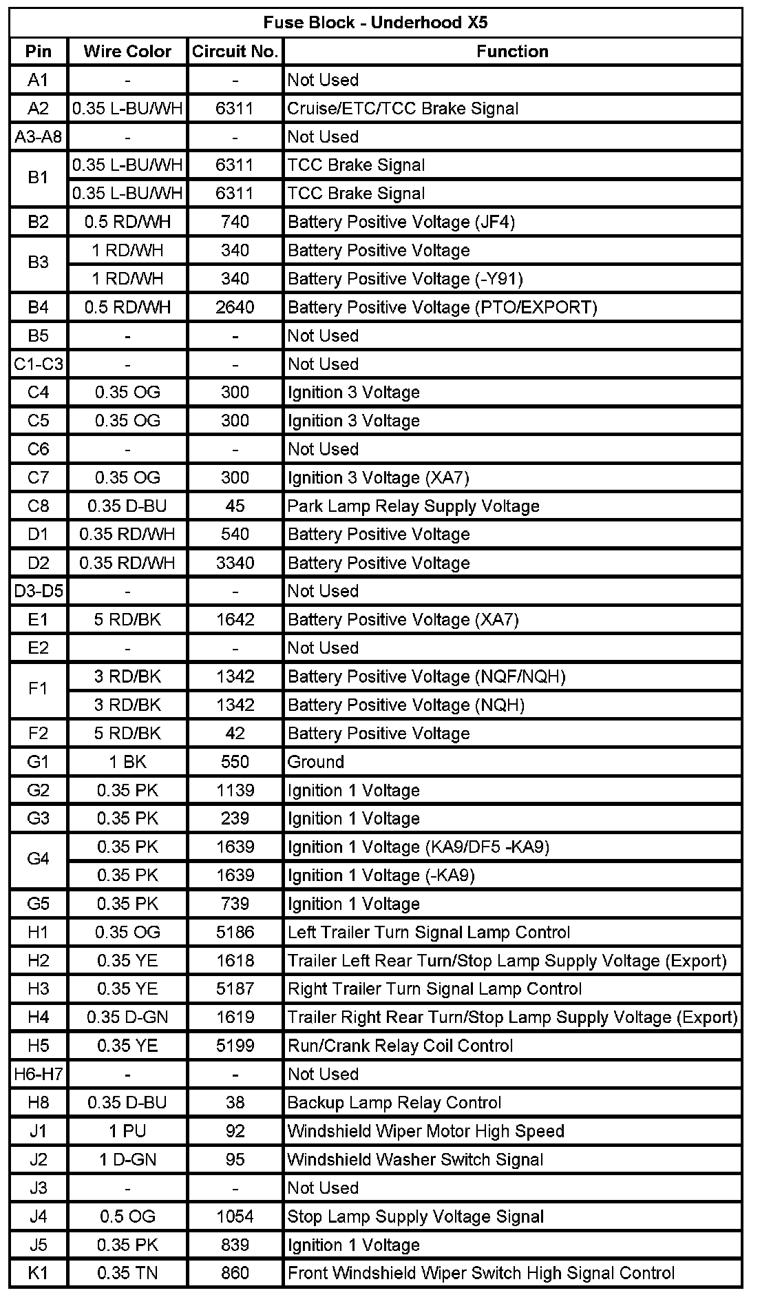 Fuse Block - Underhood X5 (Pin A1 To K1):