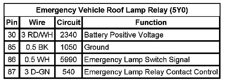 Emergency Vehicle Roof Lamp Relay (5Y0)