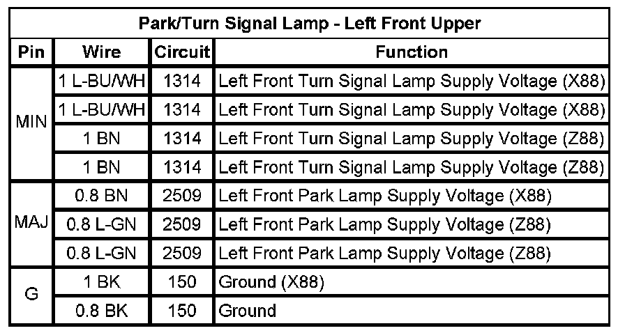 Park/Turn Signal Lamp - Left Front Lower
