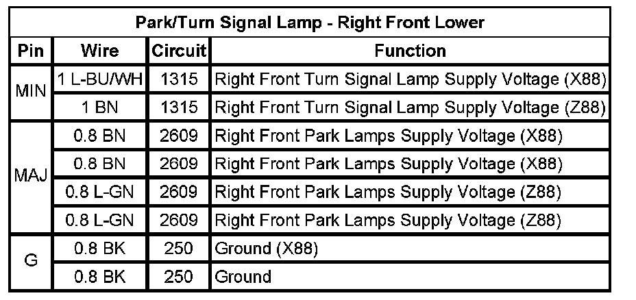 Park/Turn Signal Lamp - Right Front Lower