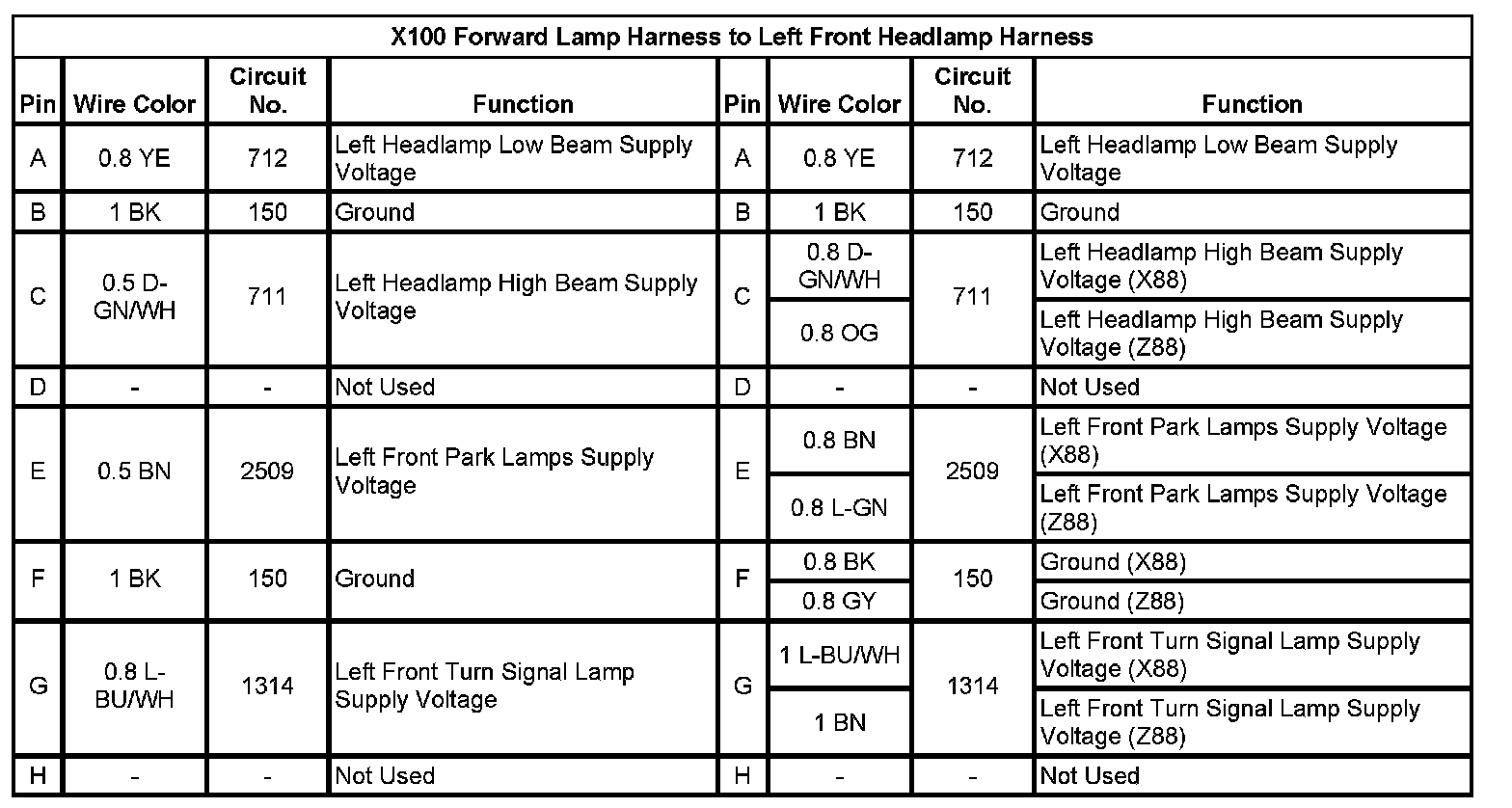 X100 Forward Lamp Harness to Left Front Headlamp Harness