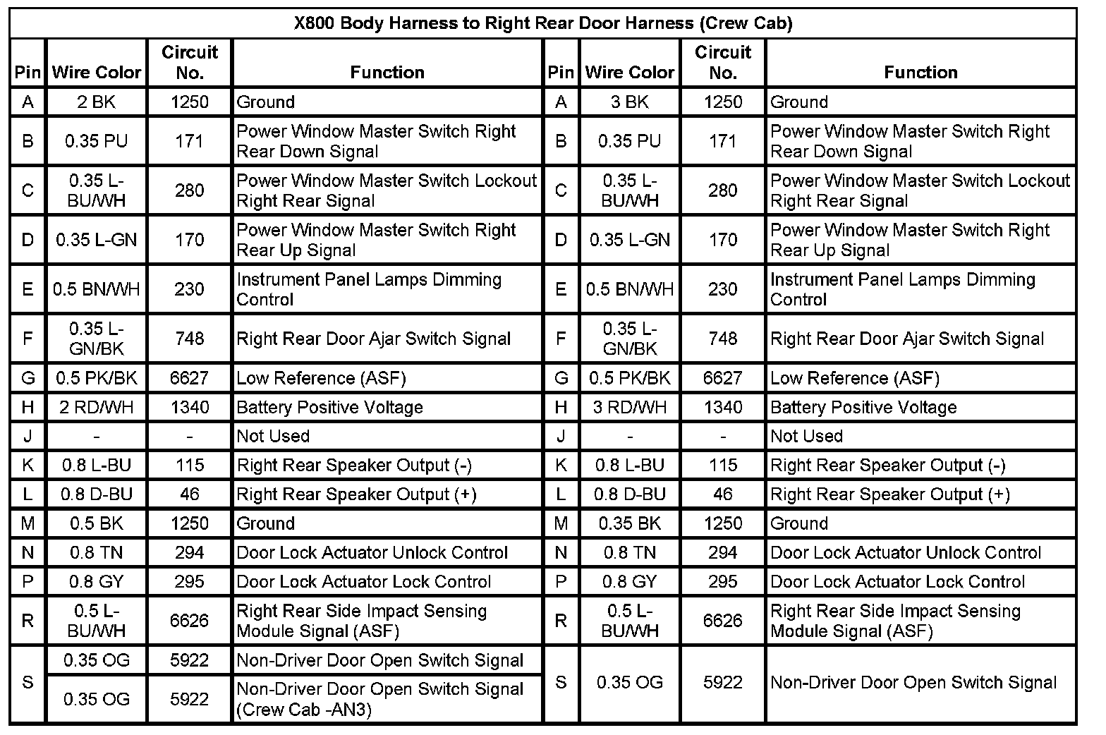 X800 Body Harness to Right Rear Door Harness (Crew Cab)