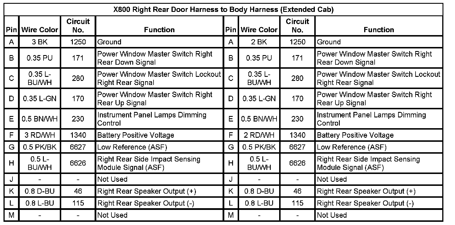 X800 Right Rear Door Harness to Body Harness (Extended Cab)