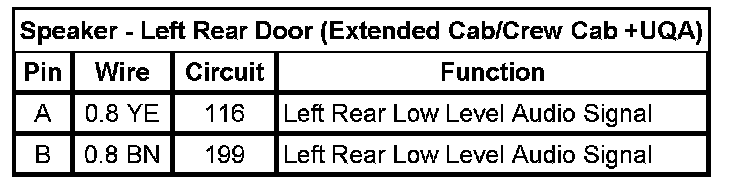 Speaker - Left Rear Door (Extended Cab/Crew Cab +UQA)