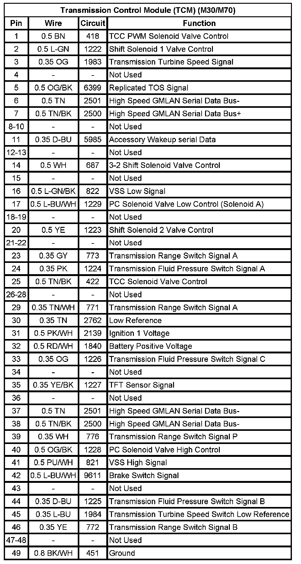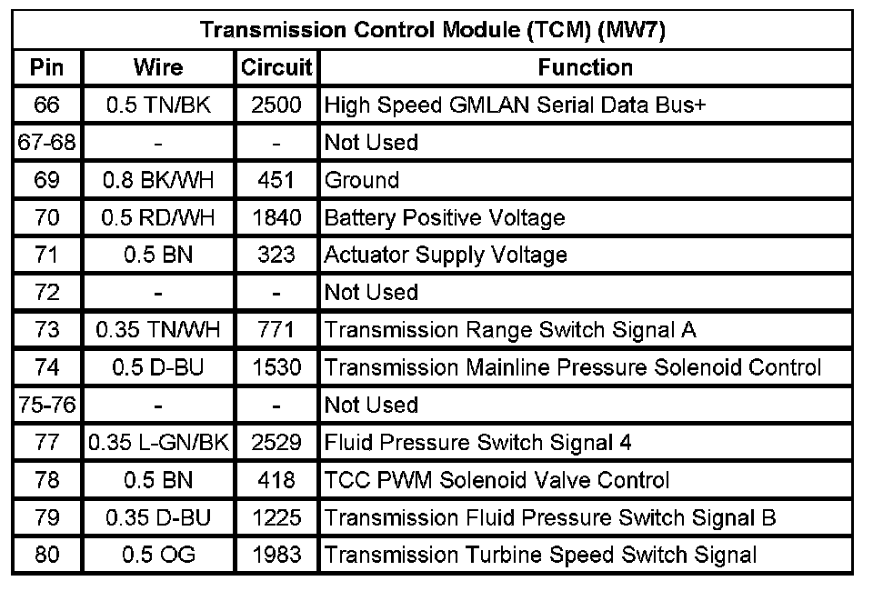 Transmission Control Module (TCM) (MW7) (Pin 66 To 80):