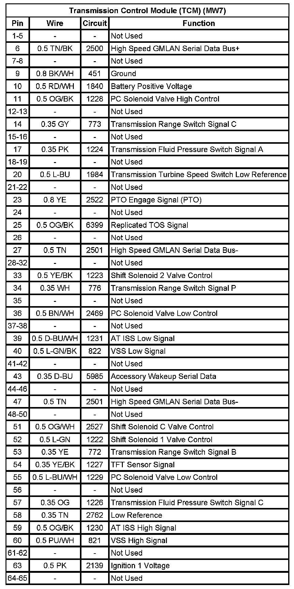 Transmission Control Module (TCM) (MW7) (Pin 1 To 65):