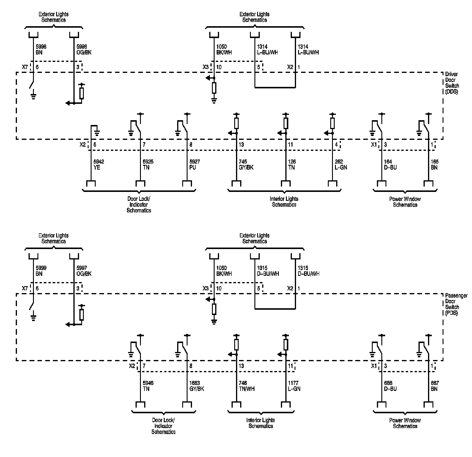 Locations: The locations for the Connectors, Grounds, Splices, and Grommets shown within these diagrams can be found via their numbers at Vehicle Locations. Locations