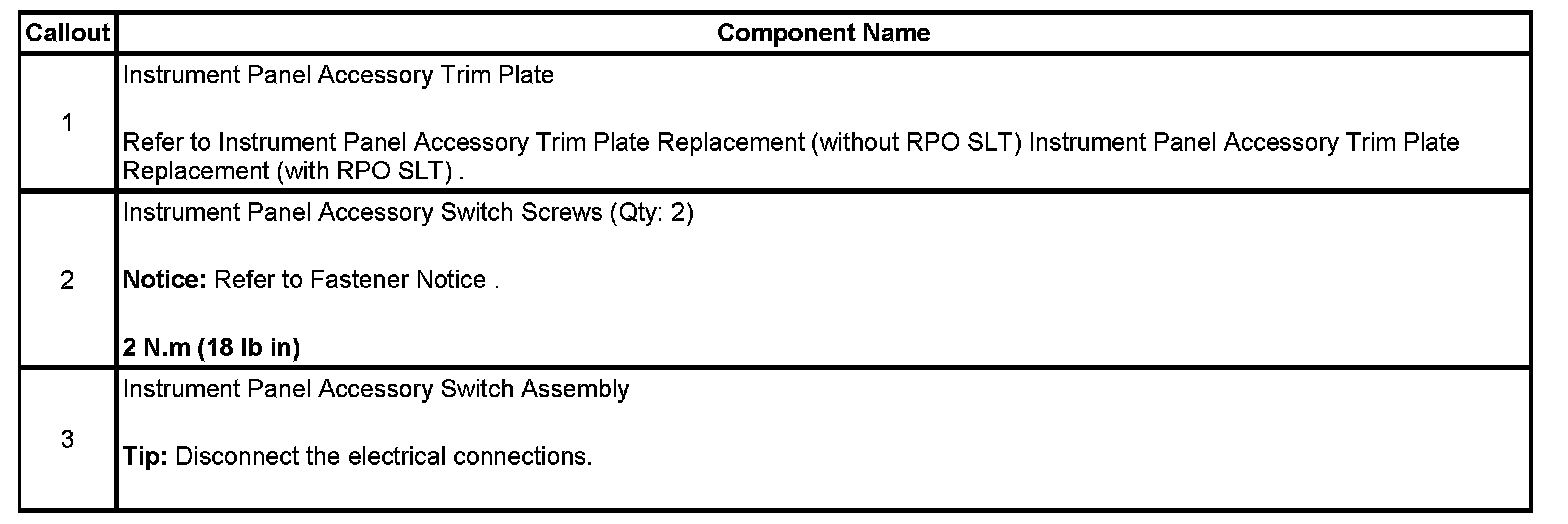 Accessory Switch Replacement (with RPO SLT)