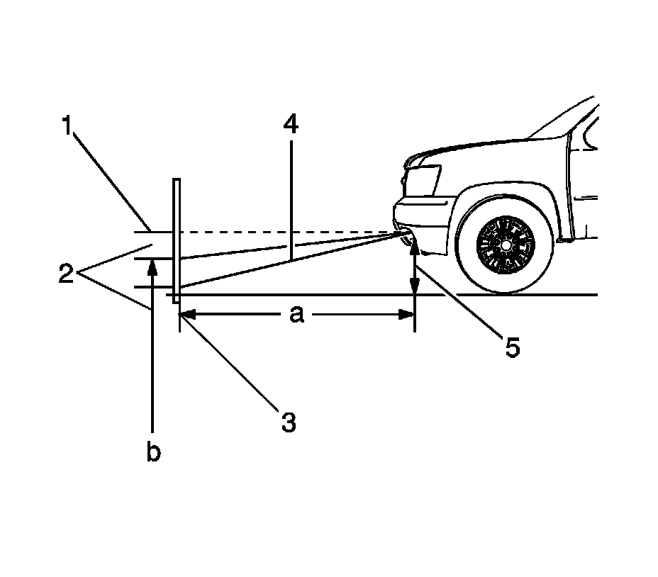 7. Adjust the fog lamp so that the top edge of the fog lamp beam pattern is 100 mm (4 in) below the horizontal centerline (2).