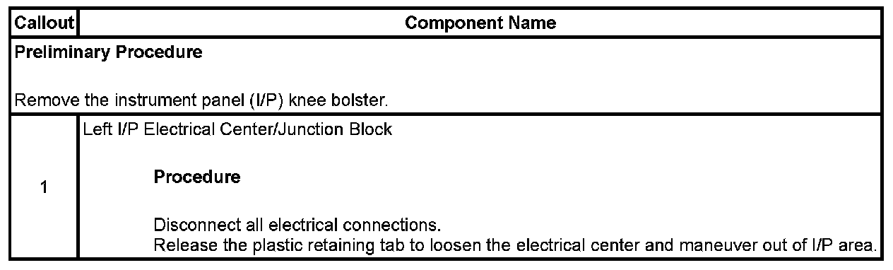 Instrument Panel Electrical Center or Junction Block Replacement - Left Side