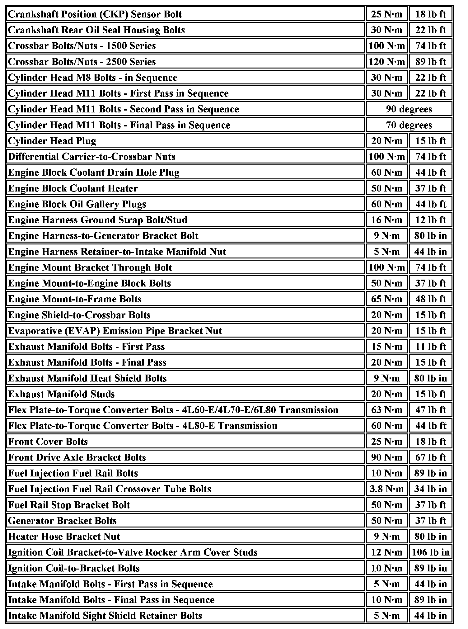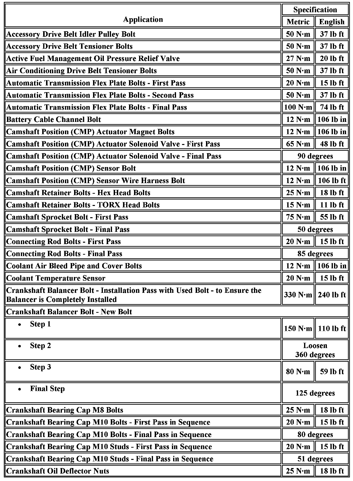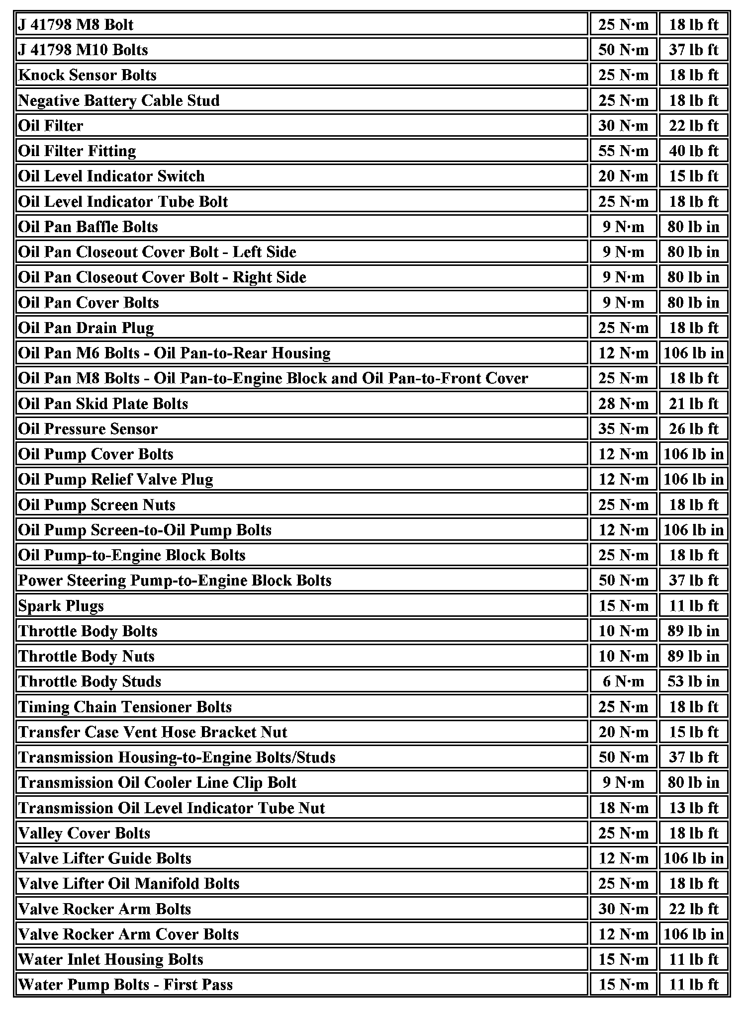 Fastener Tightening Specifications